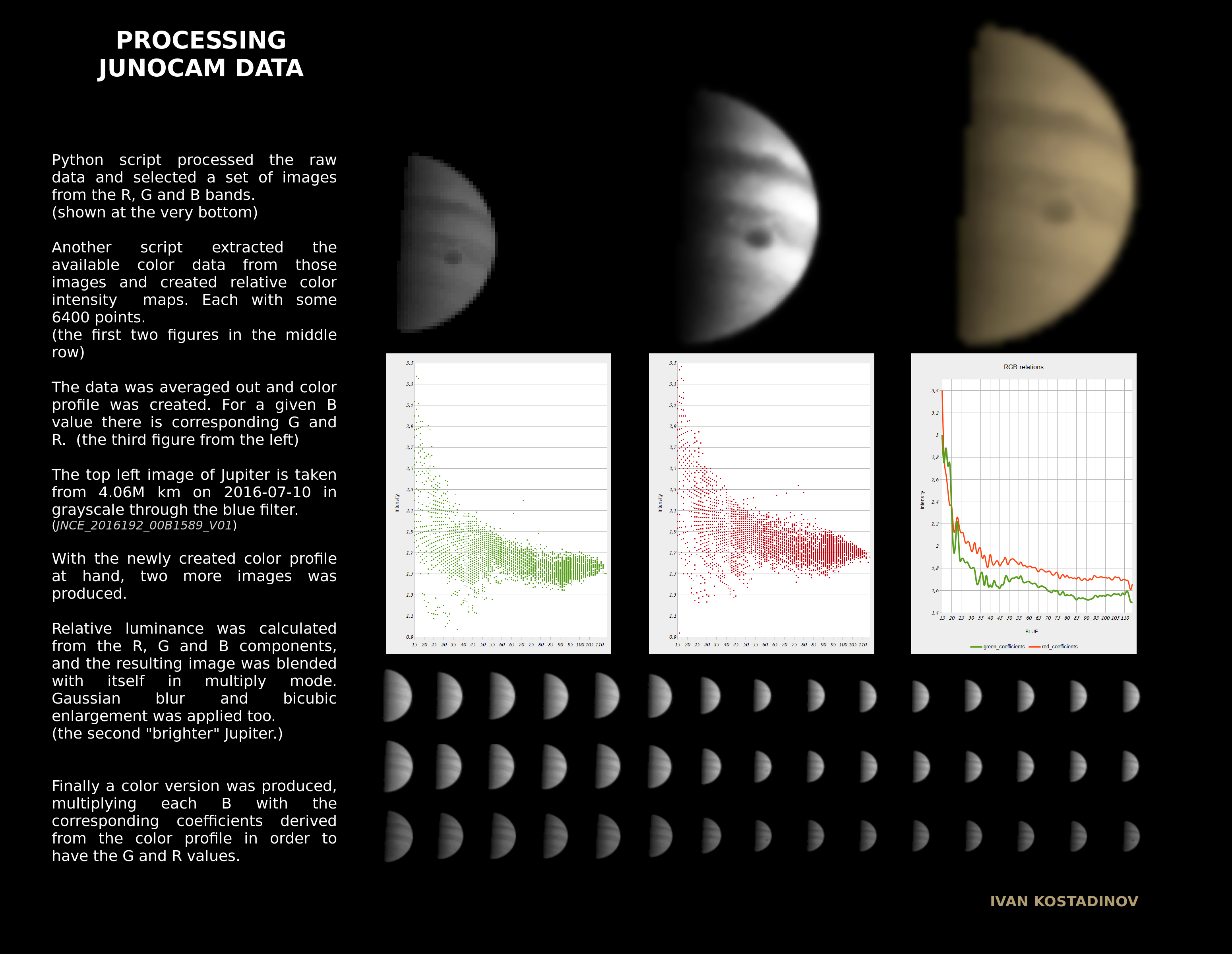 This composite image is showing the processing pipeline using python scripting (exclusively) to create a synthetic colorization on grayscale images from color information derived from different source (but the same object).