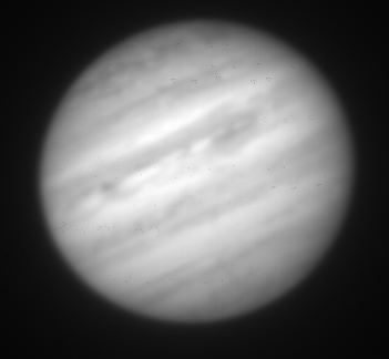 1.58-micron observation of Jupiter taken by the staff of NASA's Infrared Telescope Facility (IRTF) using the guide camera of the SpeX facility infrared spectrometer as a part of a program to characterize atmospheric variability in Jupiter to support the Juno mission.