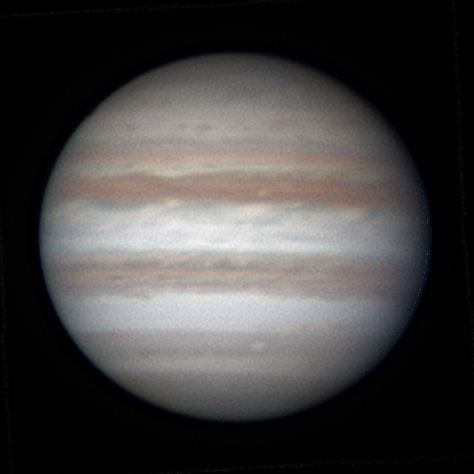 Orientation: N:up, p:right. Stacked RGB channels. Seeing:II. Equipment: 279mm SCT + 2X Barlow, ASI 290MM + RGB filters.
