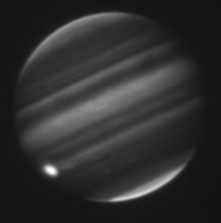 2.16-micron observation of Jupiter taken by the staff of NASA's Infrared Telescope Facility (IRTF) using the guide camera of the SpeX facility infrared spectrometer as a part of a program to characterize atmospheric variability in Jupiter to support the Juno mission.
