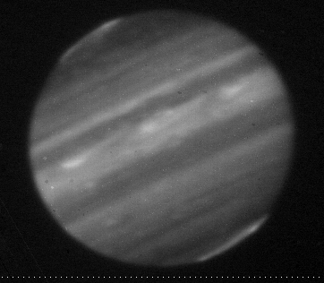 3.80-micron (L' filter) observation of Jupiter taken by the staff of NASA's Infrared Telescope Facility (IRTF) using the guide camera of the SpeX facility infrared spectrometer as a part of a program to characterize atmospheric variability in Jupiter to support the Juno mission. This filter is sensitive to sunlight reflected from clouds as deep as 1 bar, plus some additional radiation from H3+ aurora toward the poles.