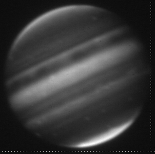 2.16-micron (Brackett-gamma filter) observation of Jupiter taken by the staff of NASA's Infrared Telescope Facility (IRTF) using the guide camera of the SpeX facility infrared spectrometer as a part of a program to characterize atmospheric variability in Jupiter to support the Juno mission.