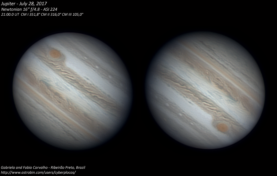 Jupiter on July 28 with fair seeing and good transparency