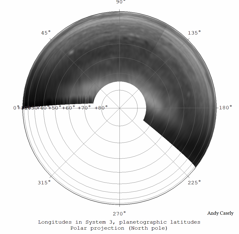 North Polar projection map in methane, created from 2 images - 1059UT, 1204UT
