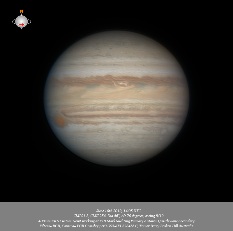 RGB data. Jupiter at opposition. Very hi-res particularly down the down stream structure from the material ejected from the eye of the GRS.