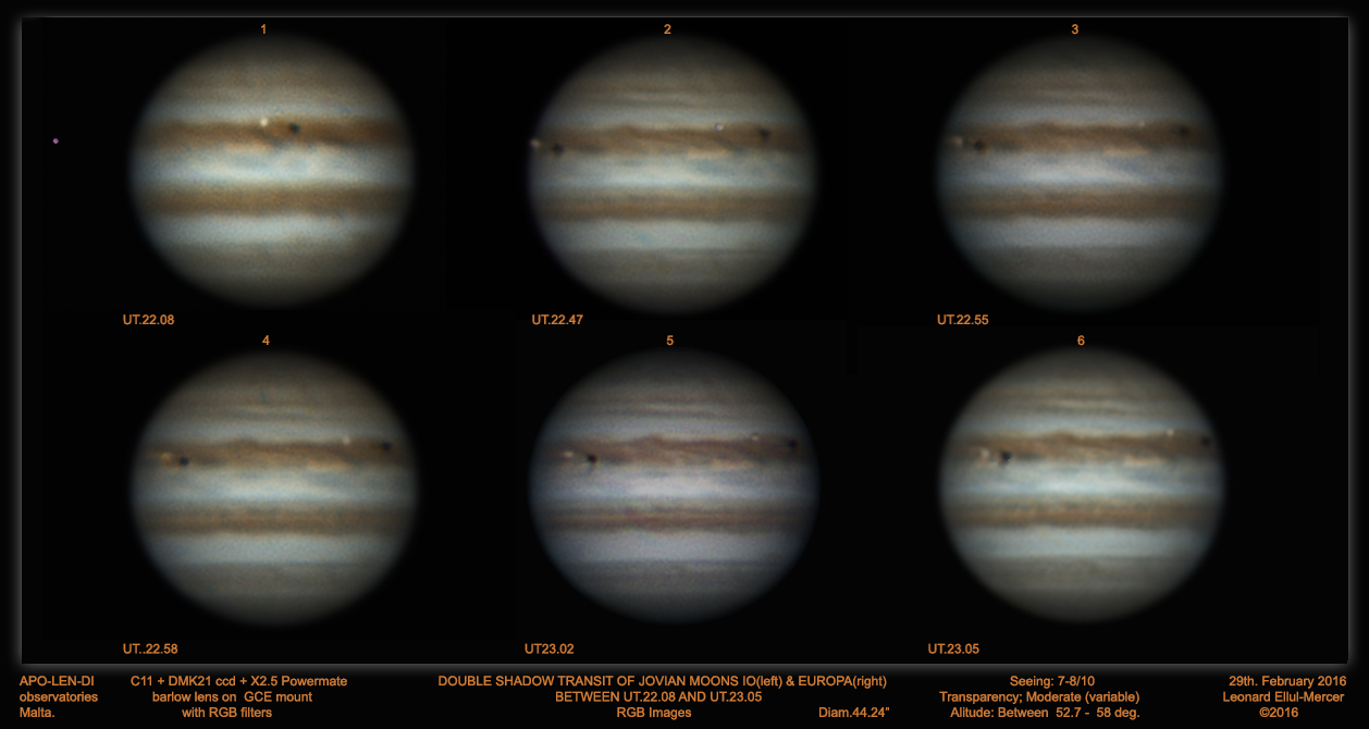 This is a 6 image composite of the double shadow transit between UT.22.09 and 23.05 Here is also like to video. https://www.youtube.com/watch?v=kuDSgDIIgAE