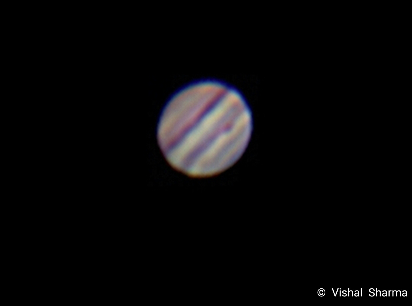 Jupiter along with its famous Red Spot captured on 05 March 17, Telescope- Meade 70 mm Eyepiece- 6 mm Celestron Camera- Sony cyber shot 12.1Mpx with camera adapter. (Captured by Vishal Sharma- Sr. GIS Engineer at MapmyIndia, New Delhi, India)