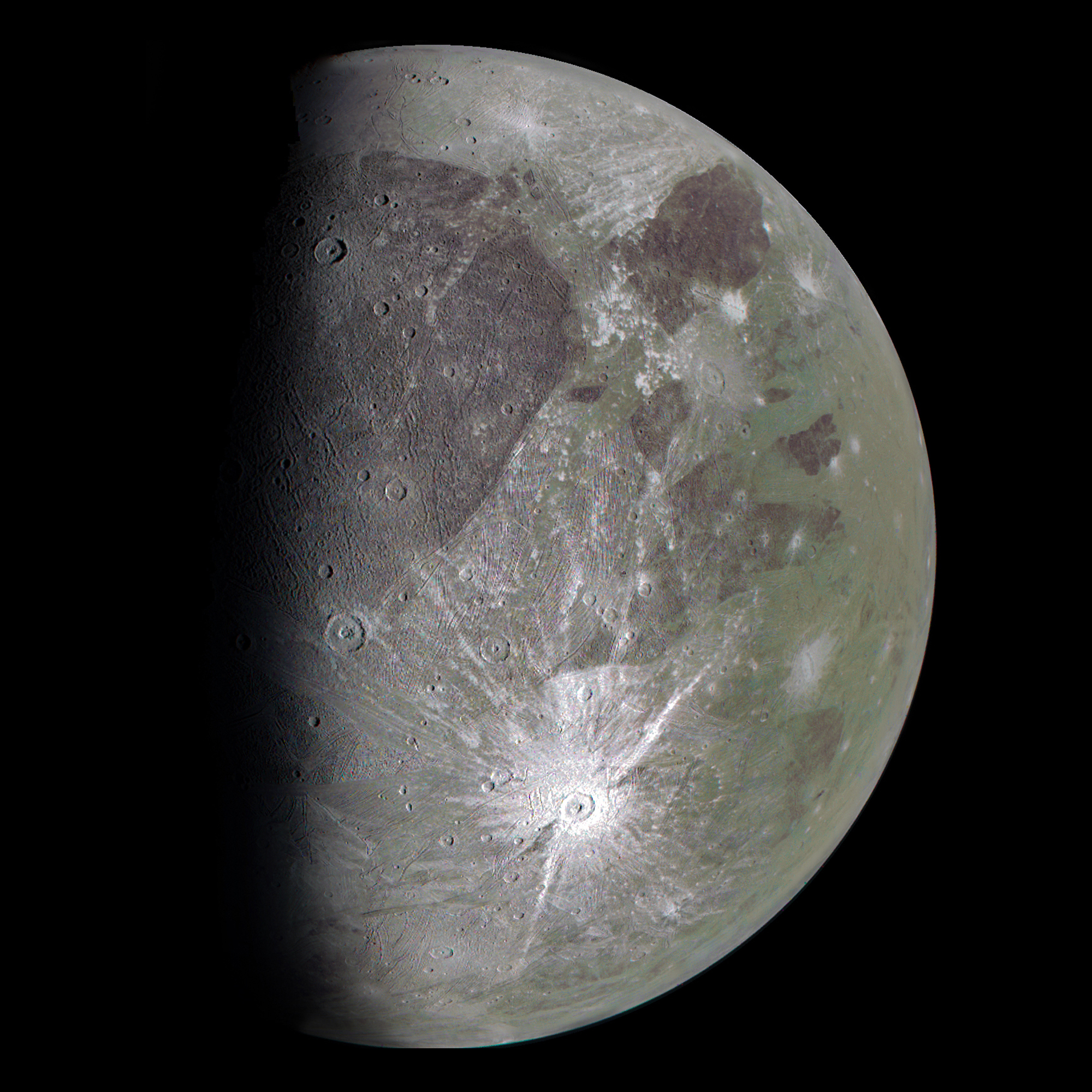 Ganimede Mosaic obtained by two junocam images panel. Processing with RGB merge channels