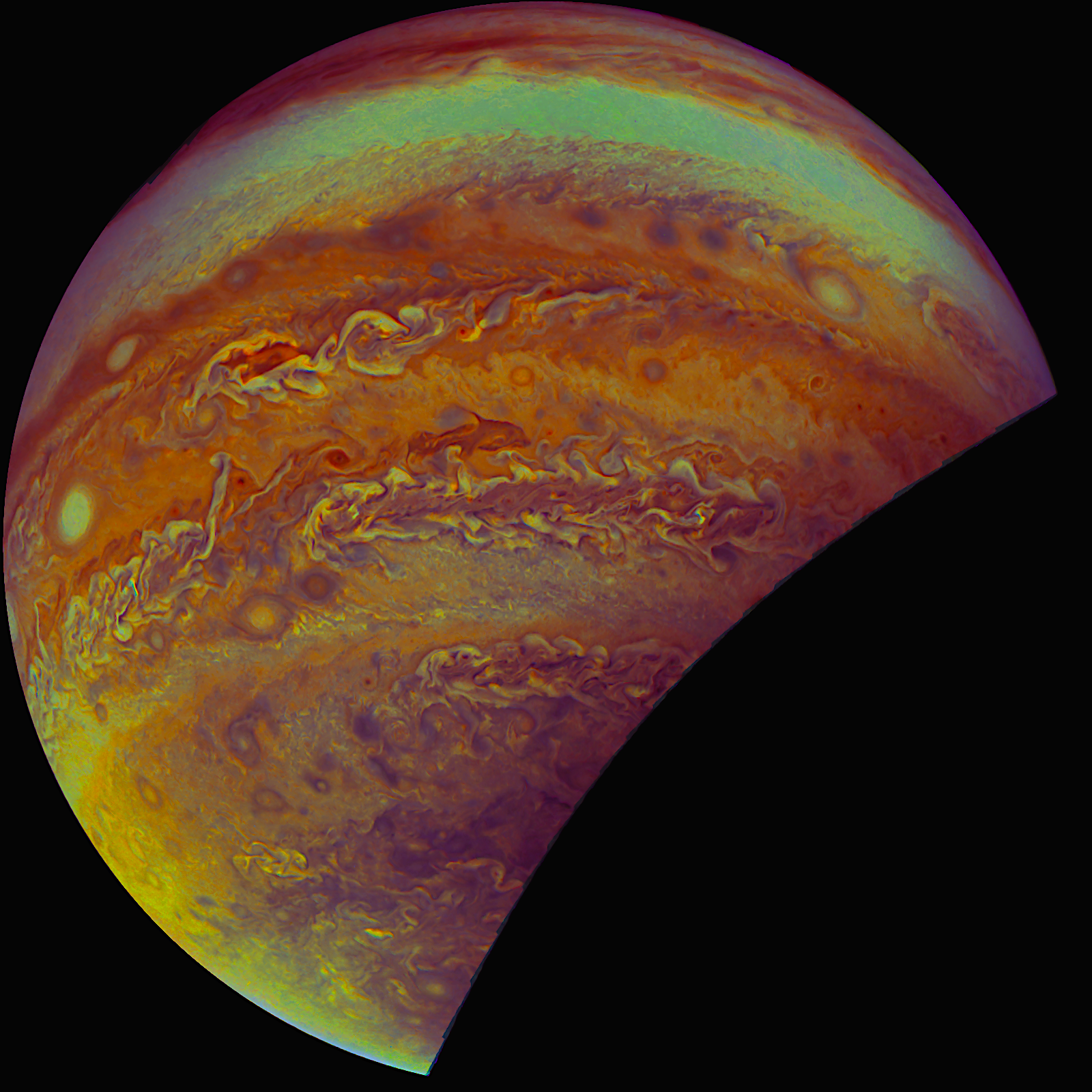 JUPITER SOUTH TEMPERATE BELT IN FALSE COLOUR