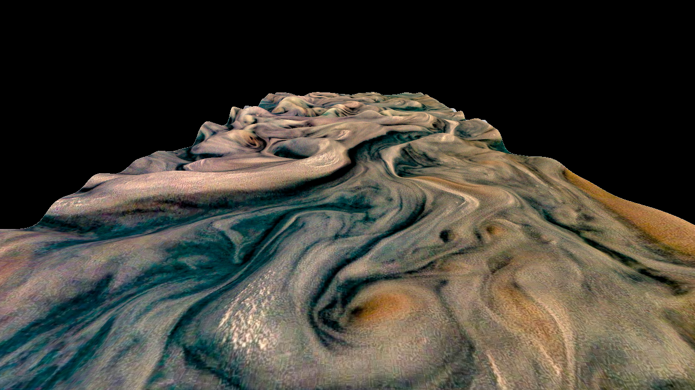 Clouds stretched like Taffy, twisting around Jupiter's canopy