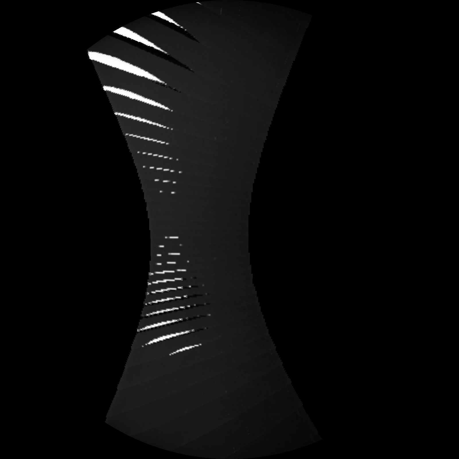 Junocam pixels are 12 bits deep from the camera but are converted to 8 bits inside the instrument using a lossless "companding" table, a process similar to gamma correction, to reduce their size. All Junocam products on the missionjuno website are in this 8-bit form as received on Earth. Scientific users interested in radiometric analysis should use the "RDR" data products archived with the Planetary Data System, which have been converted back to a linear 12-bit scale.