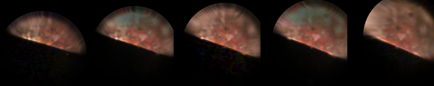 exposure) to try to detect Jupiter’s aurora. We imaged at two different geometries, looking directly down at the pole