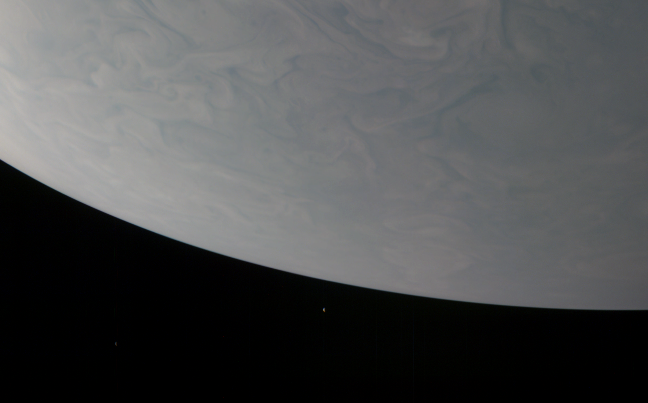 A special note about the Earth Flyby mission phase images: these were acquired in 2013 when Juno flew past Earth. Examples of processed images are shown; most contributions are from amateurs.
