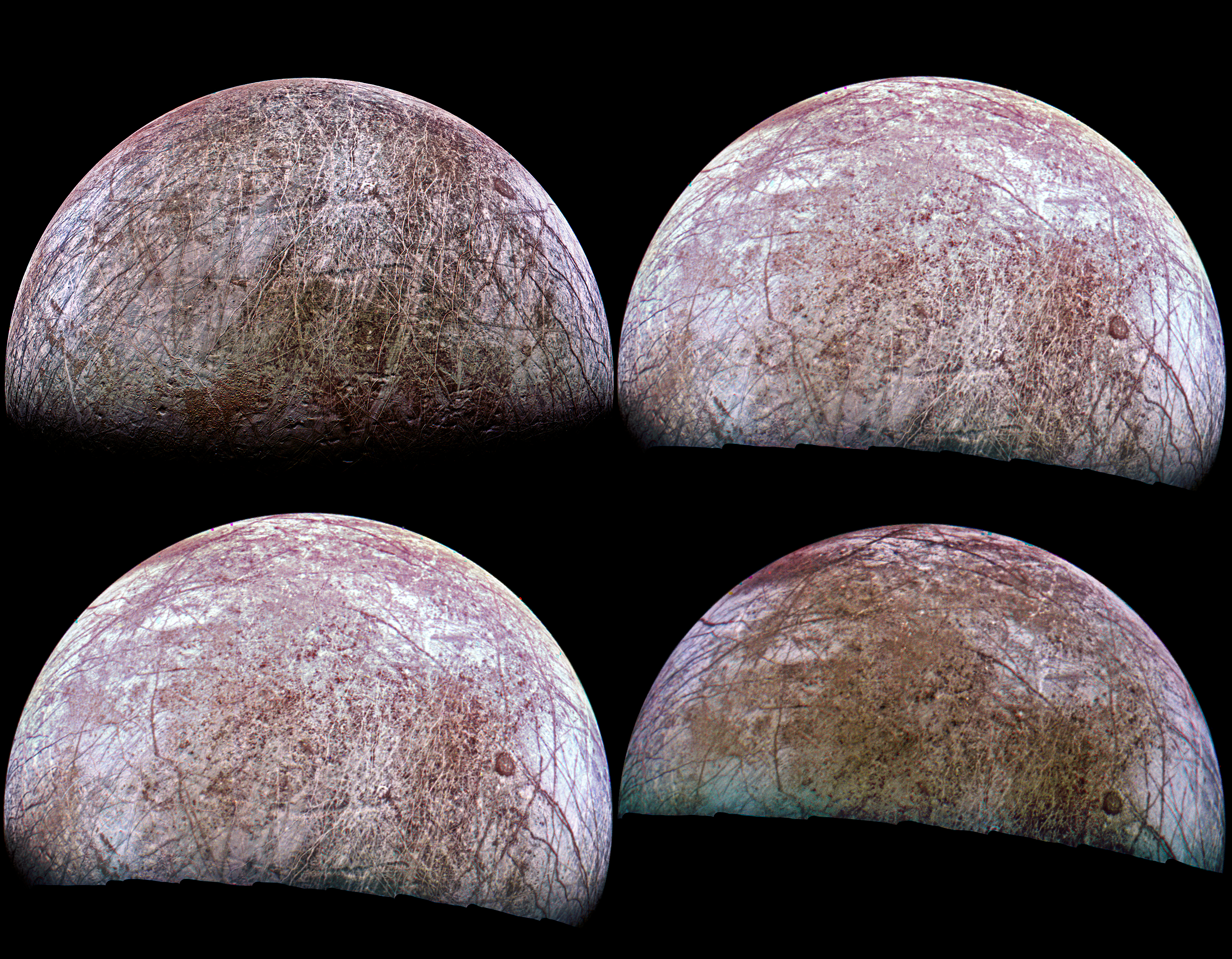 Composition with the four images of Europa taken by Juno