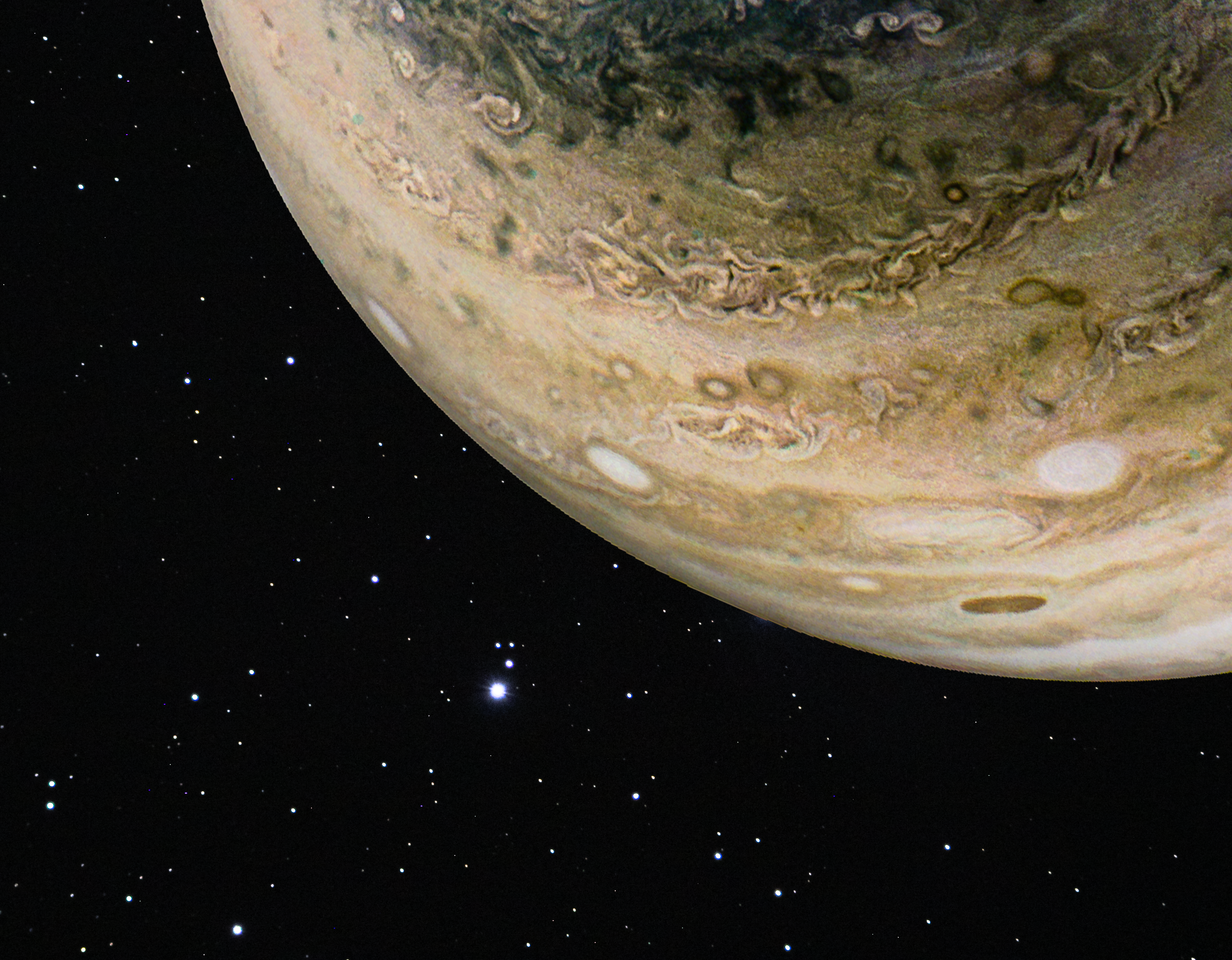 Processed Junocam images in Photoshop with starfield captured using an Explore Scientific 102mm triplet refractor