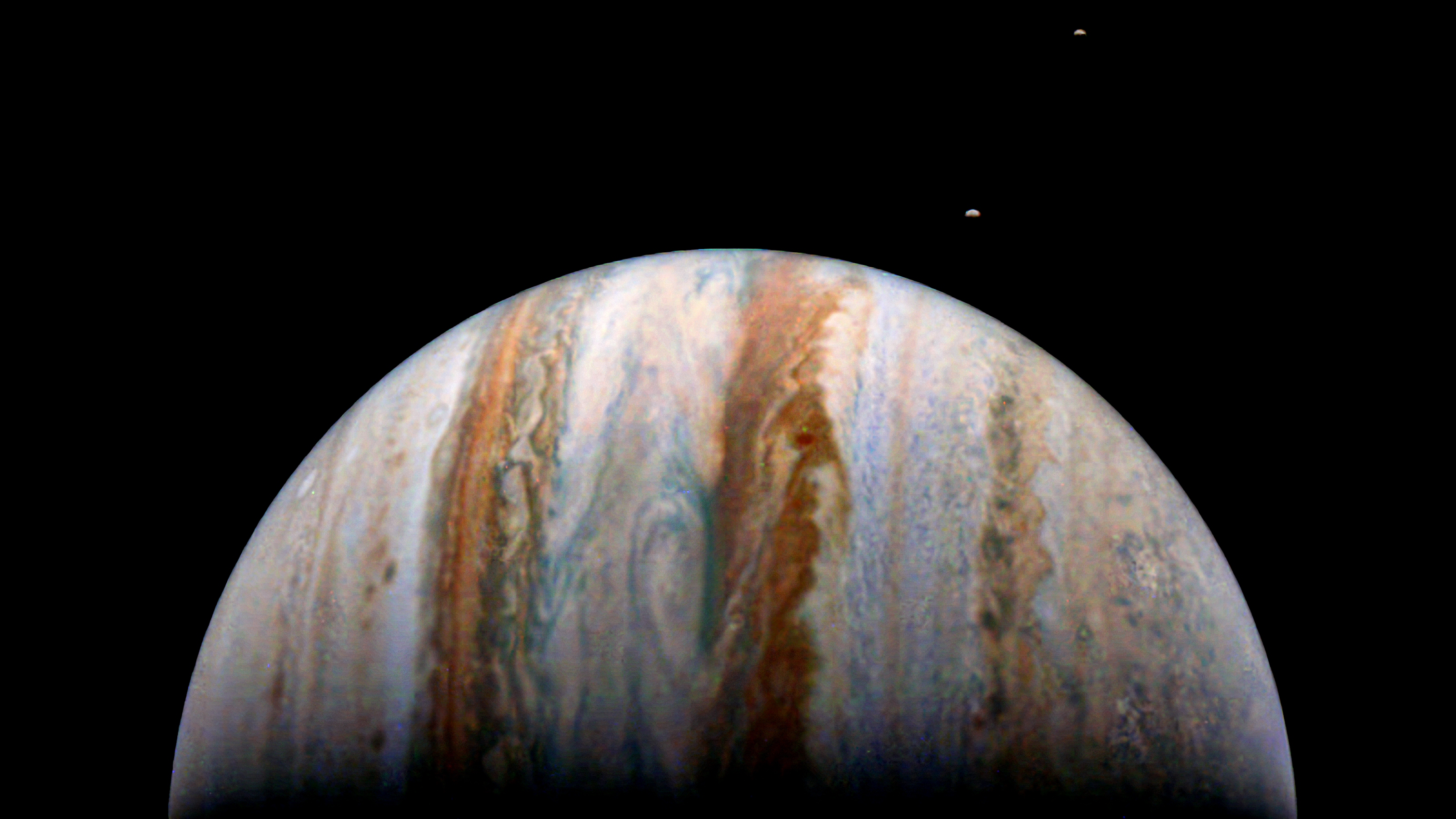 A special note about the Earth Flyby mission phase images: these were acquired in 2013 when Juno flew past Earth. Examples of processed images are shown; most contributions are from amateurs.