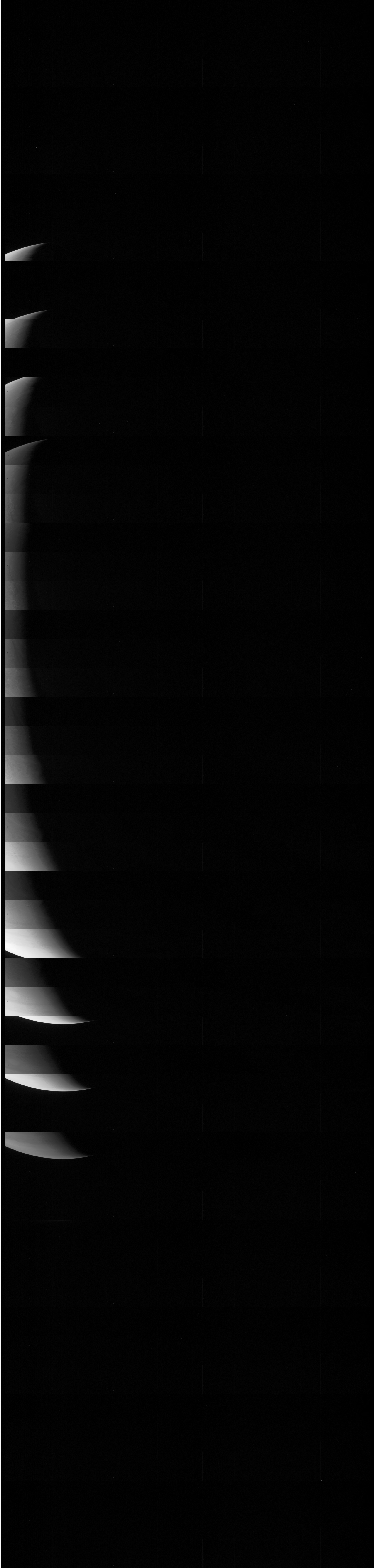 We have a methane filter, included for the polar science investigation, that is almost at the limits of our detector’s wavelength range. To get enough photons for an image we need to use a very long exposure. In some images this results in scattered light in the image. For science purposes we will simply crop out the portions of the image that include this artifact. Work is in progress to determine exactly what conditions cause stray light problems so that this can be minimized for future imaging.