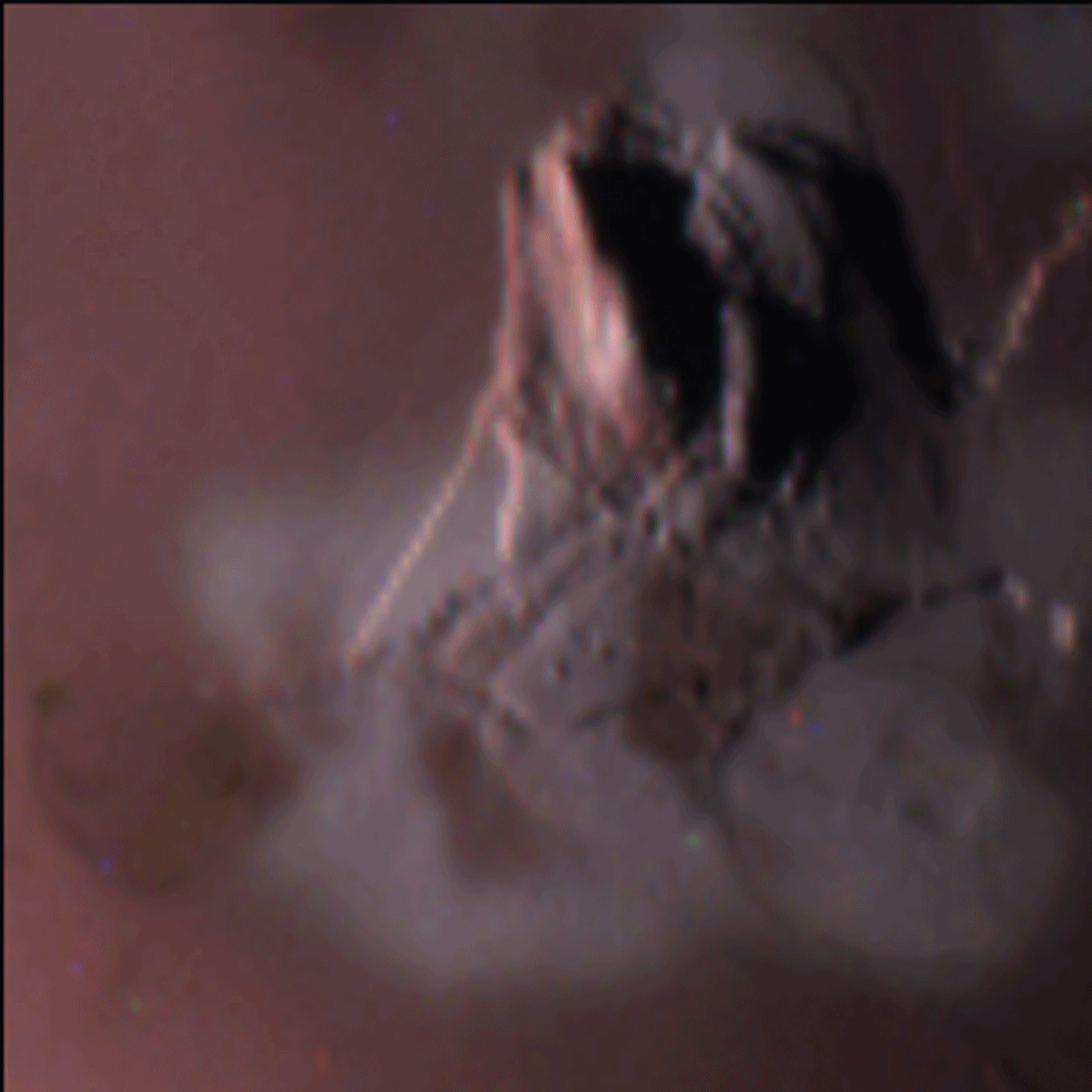 We have a methane filter, included for the polar science investigation, that is almost at the limits of our detector’s wavelength range. To get enough photons for an image we need to use a very long exposure. In some images this results in scattered light in the image. For science purposes we will simply crop out the portions of the image that include this artifact. Work is in progress to determine exactly what conditions cause stray light problems so that this can be minimized for future imaging.