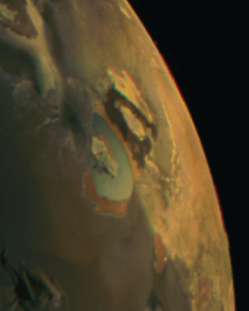 exposure) to try to detect Jupiter’s aurora. We imaged at two different geometries, looking directly down at the pole