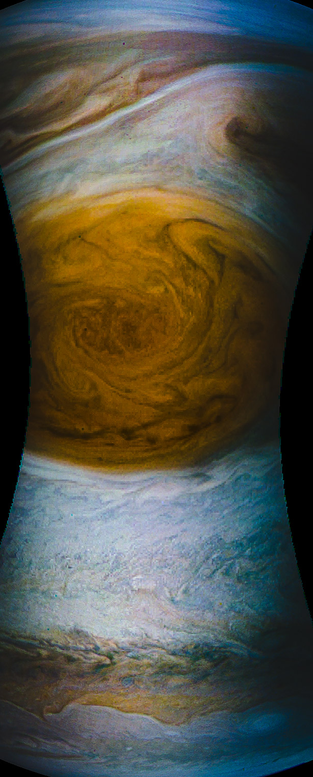 My first attempt at processing a NASA raw image. This is the closest flyby by Juno of The Great Red Spot