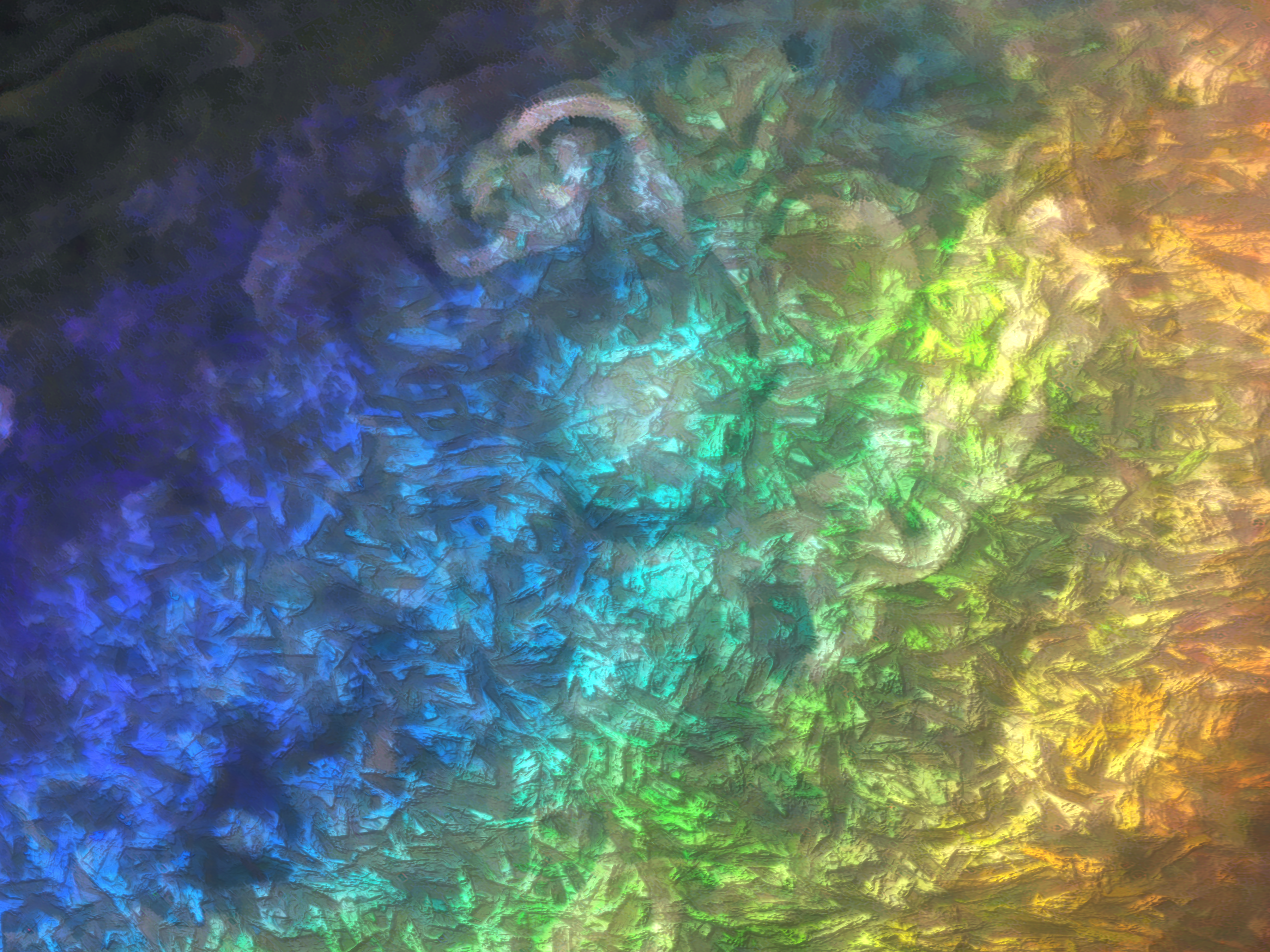 Creatively coloured and styled image with the planet Jupiter looking somewhat like an impressionist painting.