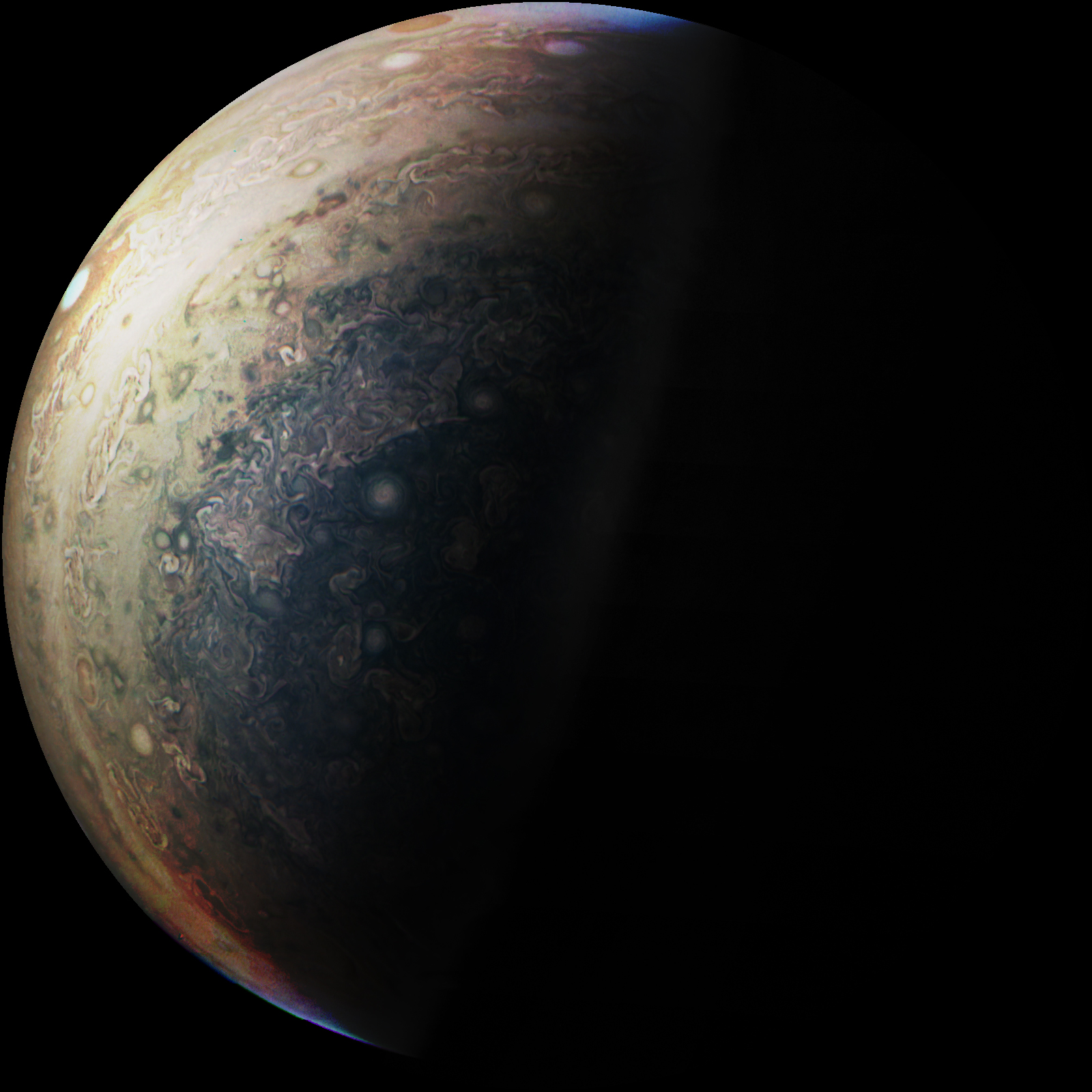 We invite you to download raw JunoCam images posted here and do your own image processing on them. Be creative! Anything from cropping to color enhancing to collaging is fair game. Then upload your creations here.
