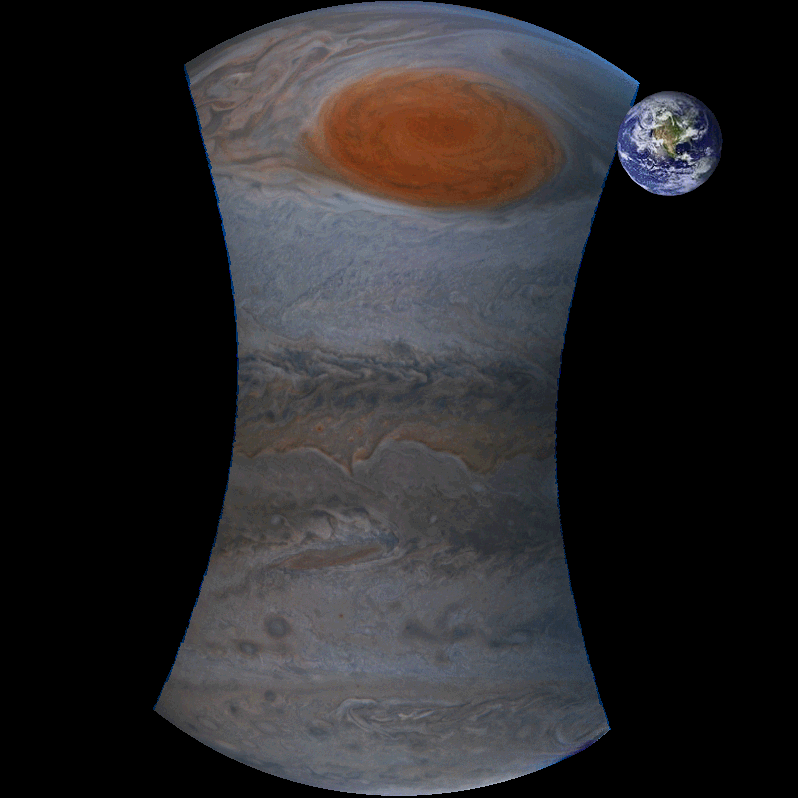 This is my enhanced image of the original Juno's JNCE_2017192_07C00062_V01-mapprojected image. I've also added an animation comparing the size of Jupiter's red spot to Earth.