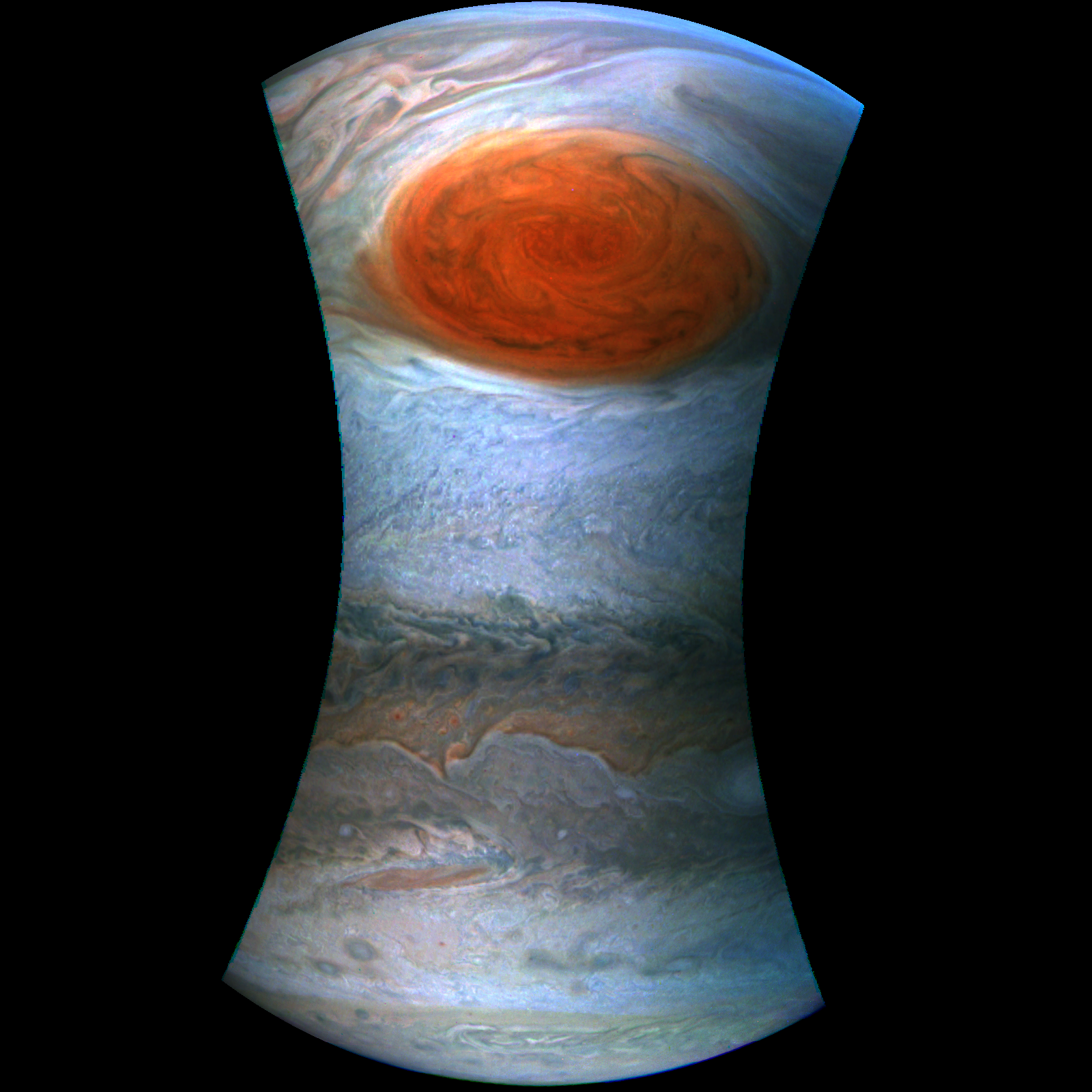 As per Junocam but colour enhanced