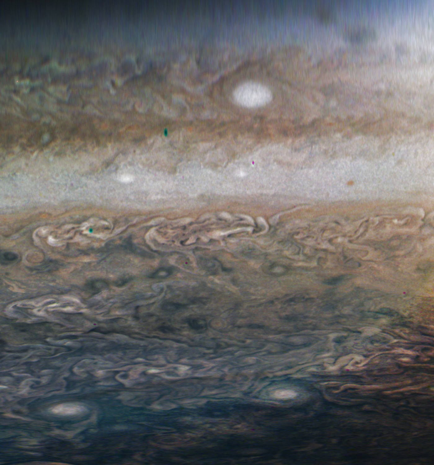 The image shows the incredibly high variability of cloud features on Jupiter.