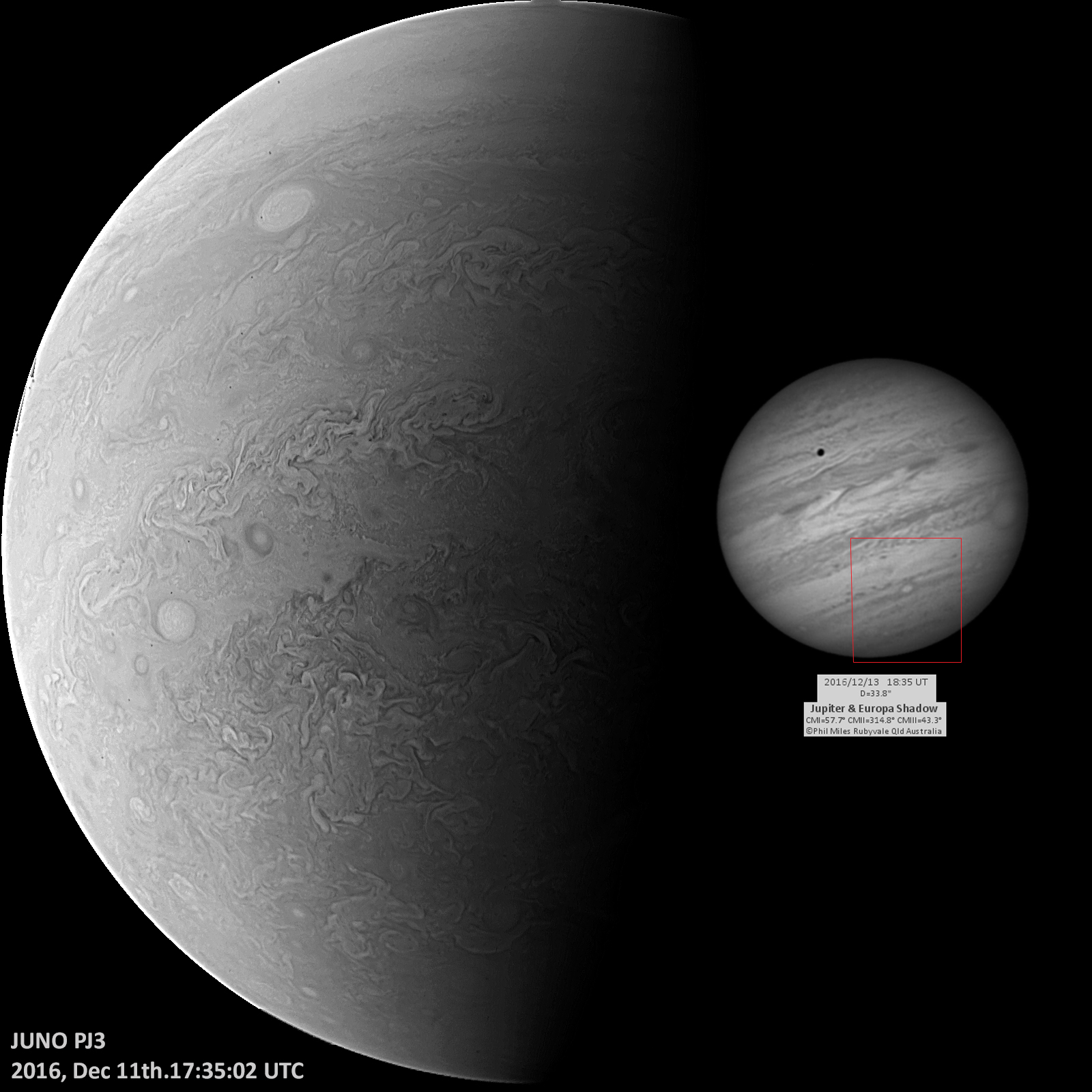 PJ3 Image with Earth based comparision