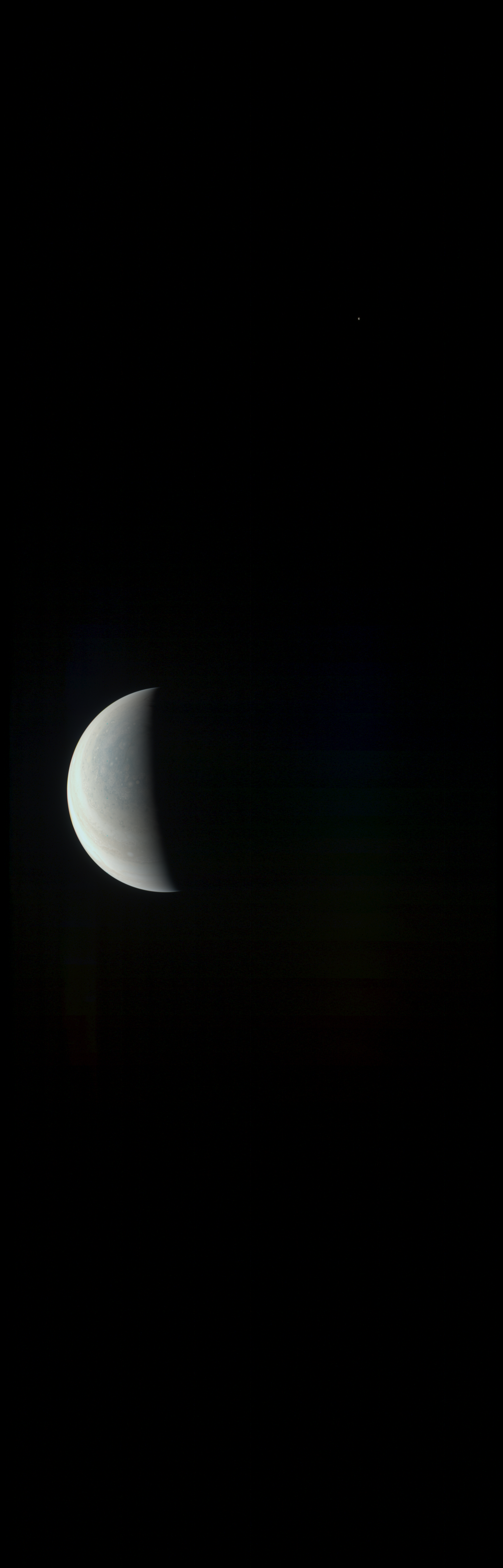 The image is processed in a draft way, decompanded, roughly stitched, approximately radiometrically adjusted, but without assumptions about Juno's trajectory or Jupiter's shape.