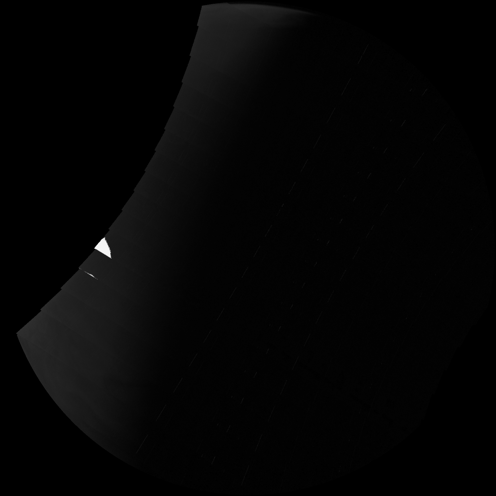 We have a methane filter, included for the polar science investigation, that is almost at the limits of our detector’s wavelength range. To get enough photons for an image we need to use a very long exposure. In some images this results in scattered light in the image. For science purposes we will simply crop out the portions of the image that include this artifact. Work is in progress to determine exactly what conditions cause stray light problems so that this can be minimized for future imaging.