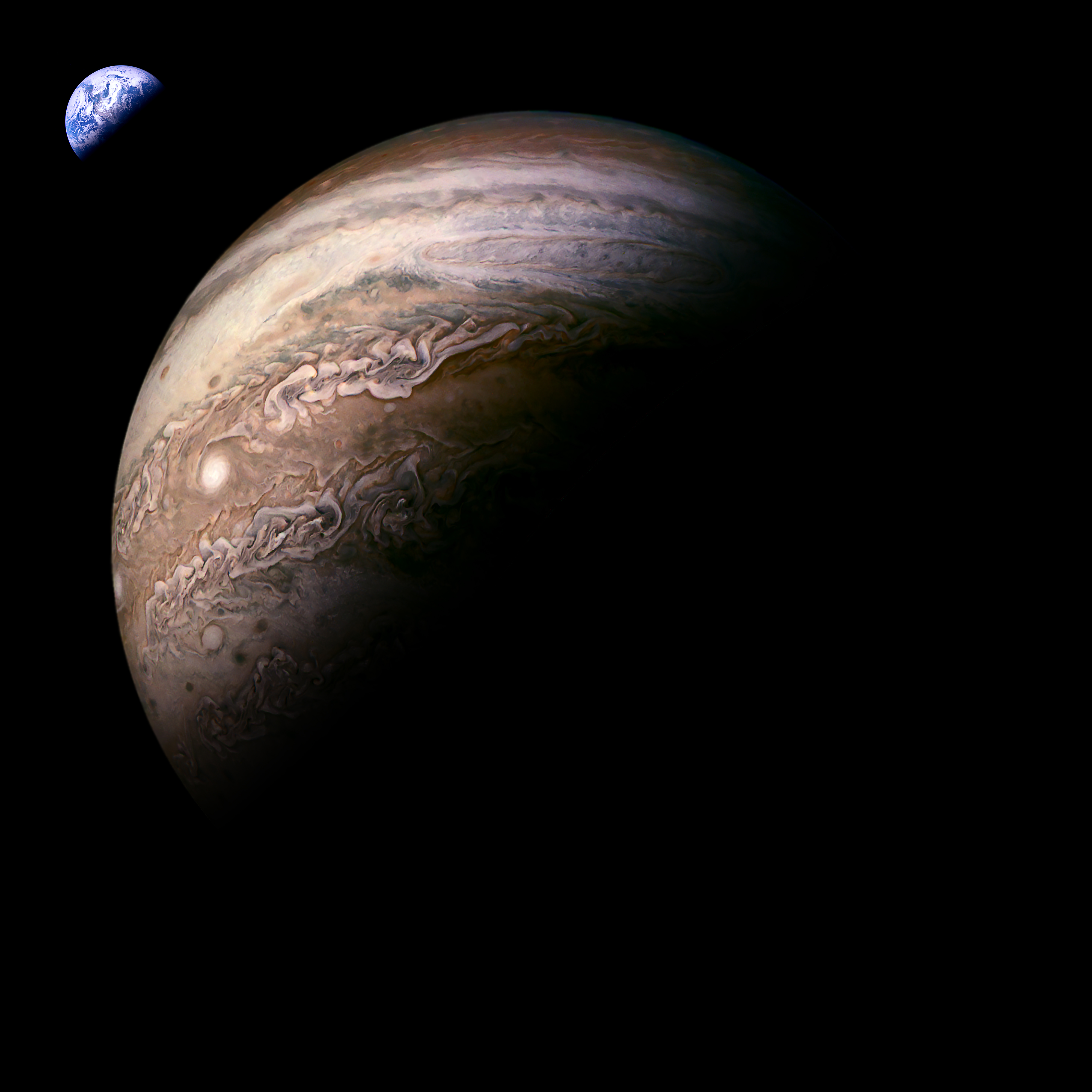 This image was created using data from Juno and the Deep Space Climate Observatories data , which consists of the earth in the background. All processing done in Photoshop. Thanks for looking, peace Jer