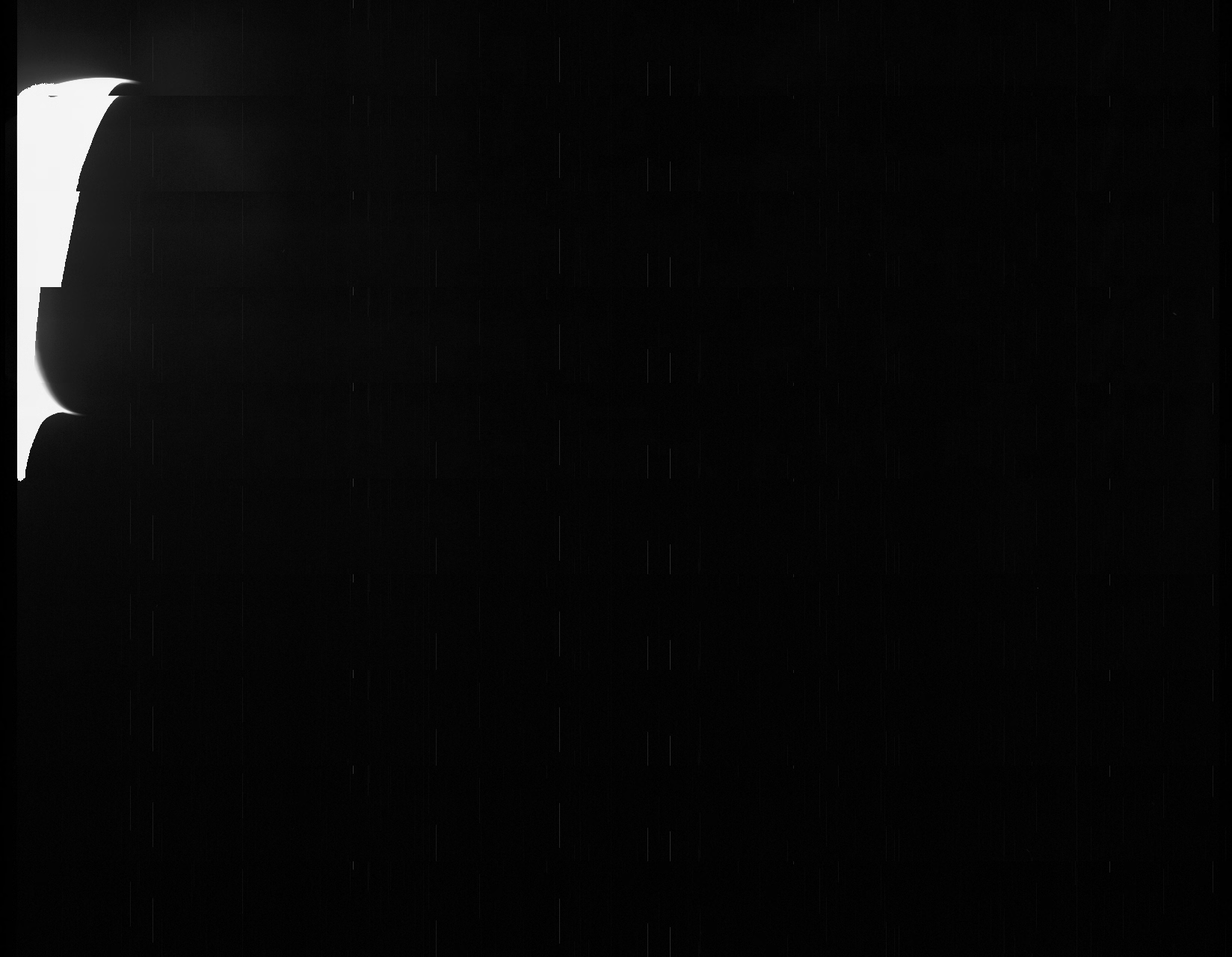 We have a methane filter, included for the polar science investigation, that is almost at the limits of our detector’s wavelength range. To get enough photons for an image we need to use a very long exposure. In some images this results in scattered light in the image. For science purposes we will simply crop out the portions of the image that include this artifact. Work is in progress to determine exactly what conditions cause stray light problems so that this can be minimized for future imaging.