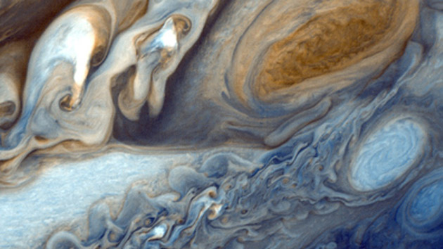 As Jupiter spins – at a brisk rate of once every 10 hours – it drags its magnetic field around with it, which creates strong electric currents. Earth has a similar feature – a ring of charged particles called the Van Allen Belt – but at a much smaller scale. Because the charged particles in Jupiter’s belt fly around extremely fast, this region is filled with radiation that can destroy a spacecraft.