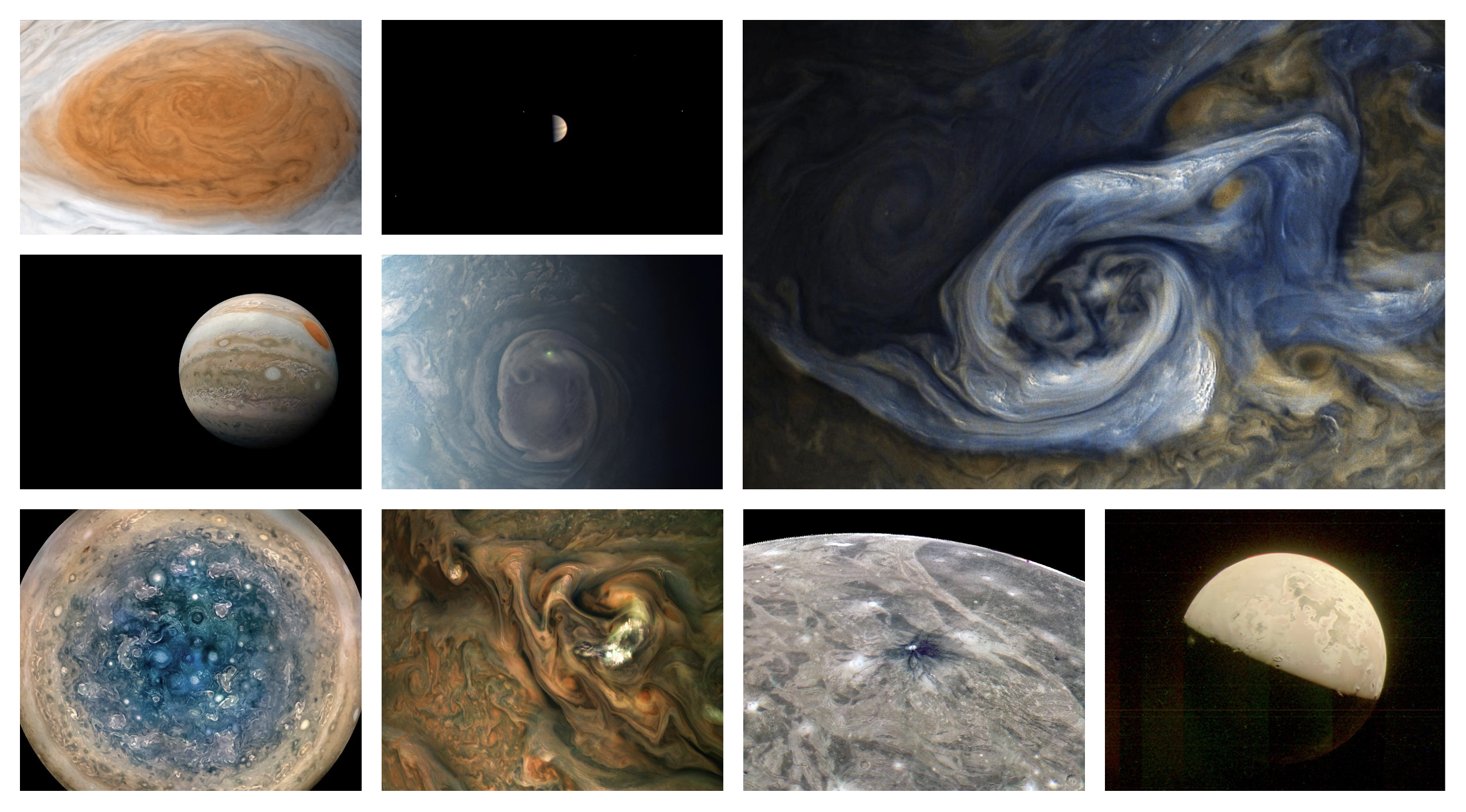 A collection of images from the mission, and community post-processing efforts in the JunoCam gallery.