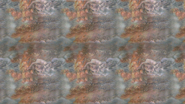 The oranges and grayed-out regions of blue-green in this tiled and color-enhanced image resemble a color scheme much like Romantic era paintings, but more abstract. The lack of discreet objects to focus on allows the mind to seek familiar Earthly shapes, and the brightest spots seem to draw the eye.