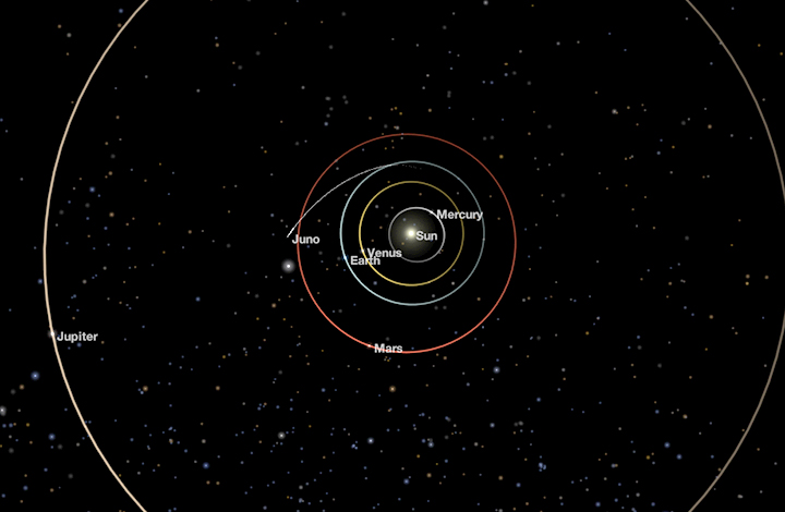 See Juno’s current position, speed and more via NASA’s Eyes on the Solar System 3D interactive. Launch the Juno module or view Juno in the standard Eyes on the Solar System interface. Additional information about the mission is available on NASA's Juno mission pages.