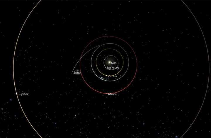 See Juno’s current position, speed and more via NASA’s Eyes on the Solar System 3D interactive. Launch the Juno module or view Juno in the standard Eyes on the Solar System interface. Additional information about the mission is available on NASA's Juno mission pages.